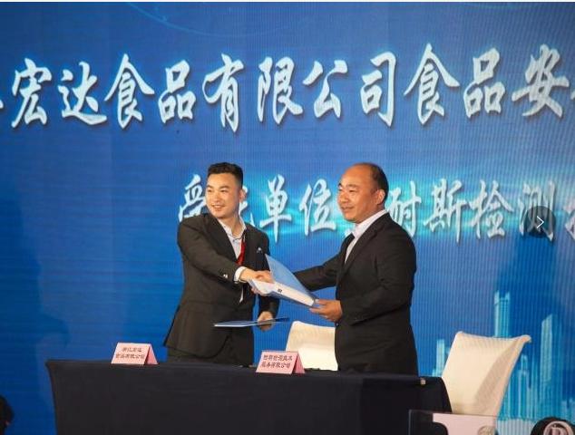 為保障食品安全,浙江江宏達(dá)食品有限公司和第三方安全檢測(cè)機(jī)構(gòu)耐斯檢測(cè)技術(shù)服務(wù)有限公司在會(huì)上簽署了合作協(xié)議。
